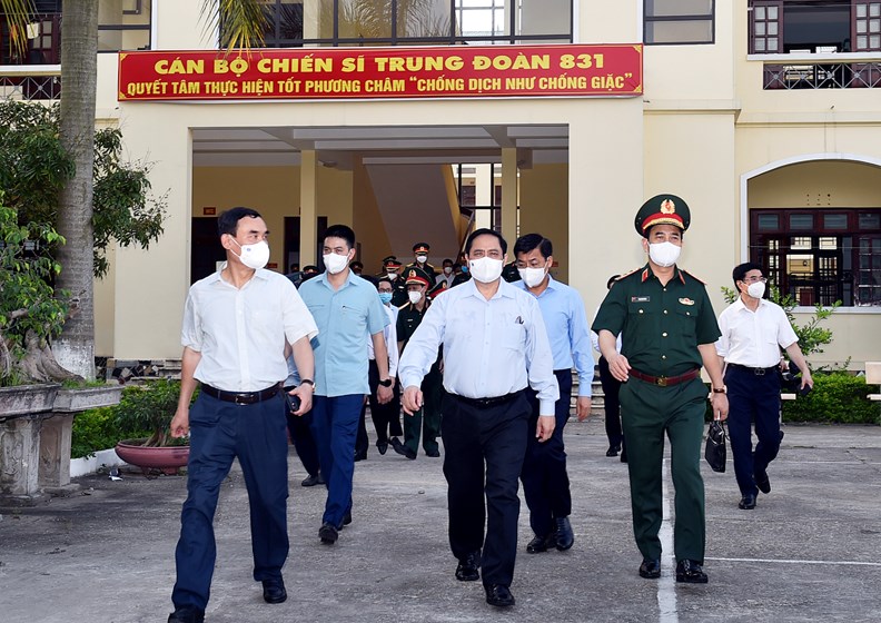 Thủ tướng Phạm Minh Chính và đoàn công tác tới động viên cán bộ, chiến sĩ và các lực lượng đang làm nhiệm vụ tại Trung đoàn 831 - Bộ Chỉ huy quân sự tỉnh Bắc Giang, ngày 29/5 - Ảnh: Nhật Bắc |