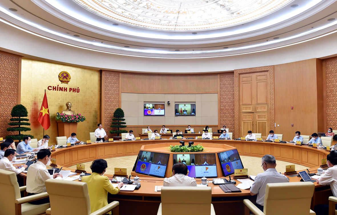| Thủ tướng Phạm Minh Chính yêu cầu trước mắt cần ưu tiên cao nhất cho việc sớm kiểm soát dịch bệnh, từng bước khôi phục hoạt động sản xuất, kinh doanh ở những nơi bảo đảm an toàn dịch bệnh - Ảnh: VGP/Nhật Bắc |